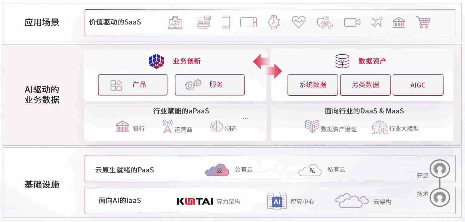 数字时代,,,,围绕企业数字化转型的关键要素,,,,PA真人游戏数码开创性的提出数云融合战略和技术体系框架,,,,着力在云原生、、、数字原生、、、AI原生和信创产业上架构产品和服务能力,,,,为处在不同数字化转型阶段的快消零售、、、汽车、、金融、、医疗、、、、政企、、教育、、、、运营商等行业客户提供泛在的敏捷IT能力和融合的数据驱动能力,,,,构建跨界融合创新的数字业务场景和新业务模式,,,,助力企业级客户建立面向未来的核心能力和竞争优势,,全面推动社会的数字化、、智能化转型升级。。。